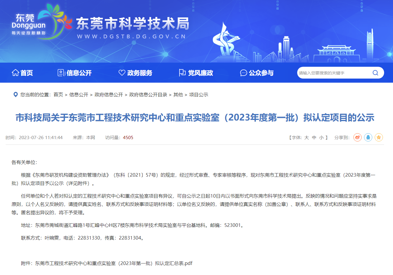 近日,东莞市科学技术局发布了《关于东莞市工程技术研究中心和重点实验室(2023年度第一批)拟认定项目的公示》(项目已过公示期),其中,由广东完美在线登录组建的“东莞市智慧城市工程技术研究中心”顺利通过认定。